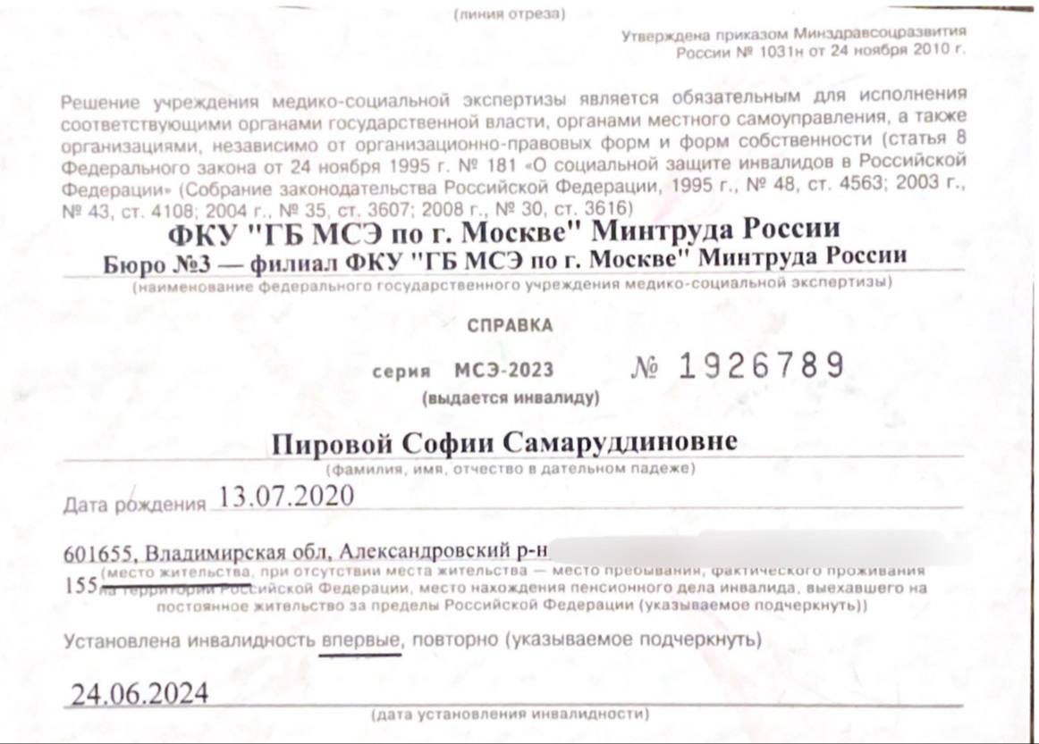 Our daughter's name is Sofia Pirova. She's only 5 years old, and we live in Aksay.
