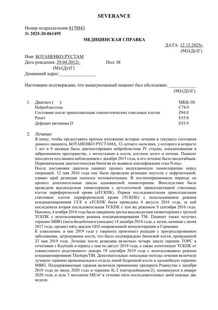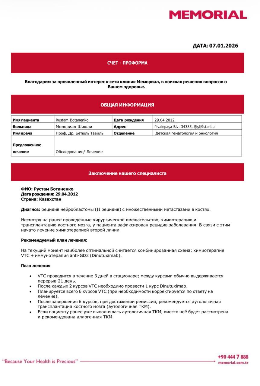 The hardest thing is to see your child suffer and feel helpless. Rustam now needs to continue treatment at a clinic in Turkey. They are ready to accept him and care for his condition.