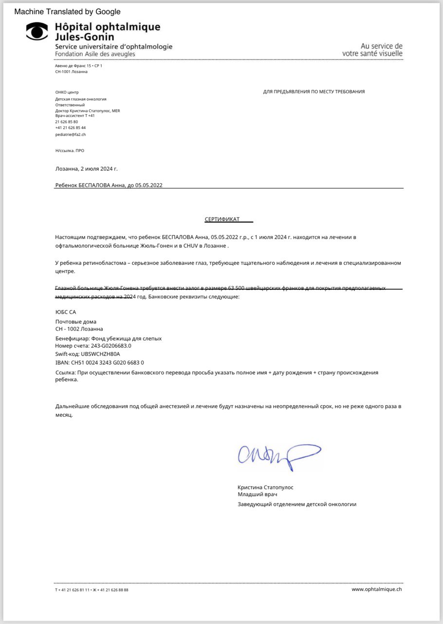 The doctors offered us only one option — to remove eyesl. But we can’t accept it. We found a clinic in Switzerland where there is a chance to save my daughter, to give her a chance at life and save her from suffering. 💖 But the treatment costs a huge amount — 2,175,000 rubles, and we don’t have that kind of money. 😞