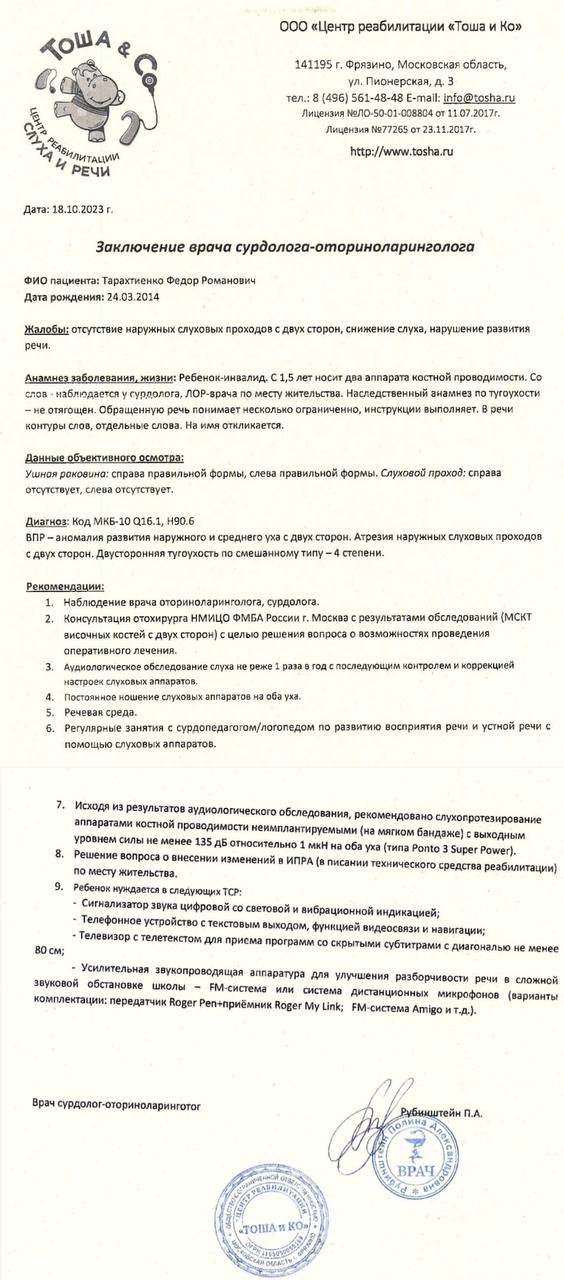 Dear friends! 💔😭Our Fedya is only 10 years old, and we live in the city of Samara. 😔 My boy has several serious diseases associated with trisomy of 8th chromosome. We have already been through many trials, and, thank God, we managed to solve the problems with congenital heart disease and kidney disease. But now, we have to fight for his life. 💔Fedya suffers from a terrible tumor in both ears - cholesteatoma, which destroys the ear canals and can lead to tragic consequences. 😢 He also has congenital atresia of the auditory canals and grade 3-4 hearing loss. Without urgent surgery, we risk not only losing his hearing, but also facing a threat to his life, because the tumor continues to grow, and if we do not intervene right now, the consequences can be fatal. ⏳😞Every day counts, and Dr.Roberson from the USA is ready to perform an operation that will help form an ear canal and remove the tumor. But, time, alas, is running out. 💔 It is important to act immediately to preserve the chance of hearing restoration and avoid a deadly threat. 😭The operations are scheduled for April 28 and October 2025 (the exact date is being specified), and the cost of both operations is 1,185,000 rubles. This is an incredibly large amount for us, and we simply cannot raise it in such a short time. We are asking for help because Fedya needs us and you! 🙏💖I don’t work because my whole life is dedicated to Fedya’s rehabilitation: hearing, speech, home schooling. We also have a daughter, 13 years old, and a husband who works alone, paying the mortgage for the apartment we moved into so that Fedya could study at a special school. 😔We really need your help. We can’t do it without you! 💔🙏 Everyone who responds can be part of saving our boy. Please help! Even a small contribution can give Fedya a chance for a healthy future. 💖🌟 PLEASE SUPPORT US. Time is running out, and we can’t afford to lose it! 😭💖