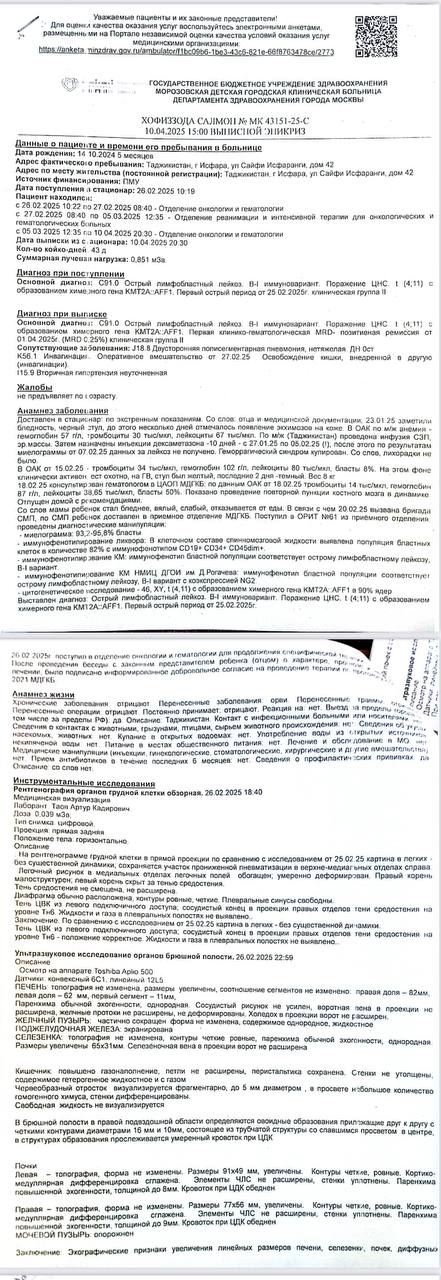 ‼️ MY BABY IS DYING ‼️ HE IS ONLY 6 MONTHS OLD 💔👶 ACUTE LYMPHOBLASTIC LEUKEMIA ⚠️ BLOOD CANCER ⚠️ HE MAY NOT LIVE UNTIL TOMORROW 😭 My son's name is Salmon🧸 He was born on October 14, 2024 🎂And already in January 2025 we were told something terrible - cancer 😢 He is undergoing chemotherapy 💉, is in the Morozov hospital 🏥, his tiny body is weakening every day... Chemical therapy is destroying everything inside him. Side effects torment him every day 🤒 But without a bone marrow transplant 💔 there is no chance at all... The amount to save my child is 1.195,000 rubles 💰 For us, this is an impossible amount 😔Funds have already helped 🙏, but now we are in a hopeless situation, only you can help... 🆘🆘🆘 We are desperately asking for help! 🆘🆘🆘 Every kopeck you give is a drop of life for Salmon 🩸He's little... he shouldn't die... 💔👼 Please don't pass by... 👩👦 He's our only baby... our air, our soul... HELP SAVE HIS LIFE🙏😭💖 ❤️ SAVE HIS HEART. SAVE HIS LIFE ❤️