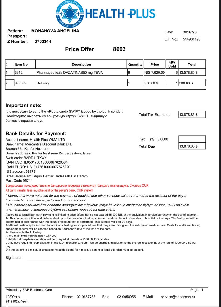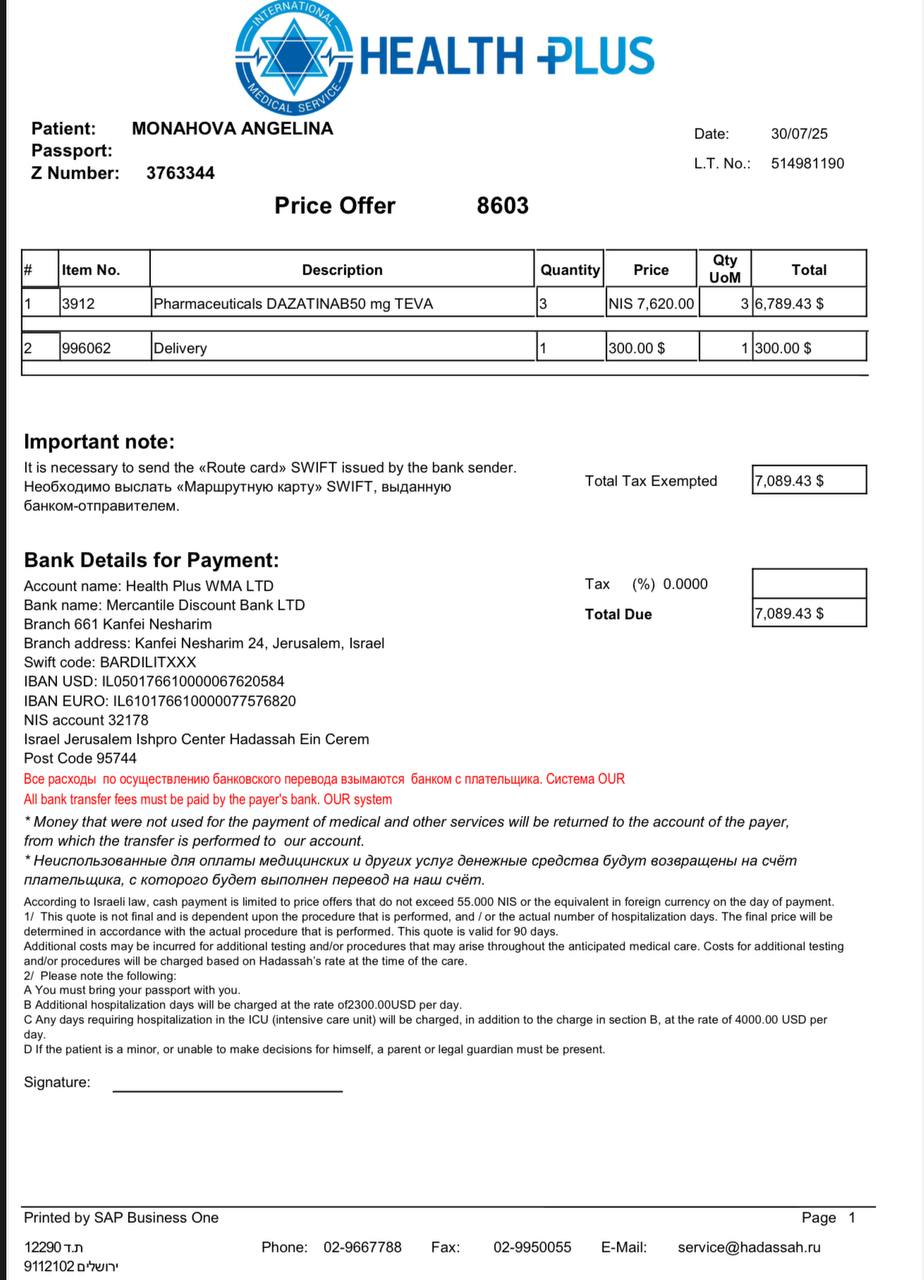 For our family, this is an unaffordable amount 😢, but without this money, Angelina may not survive.