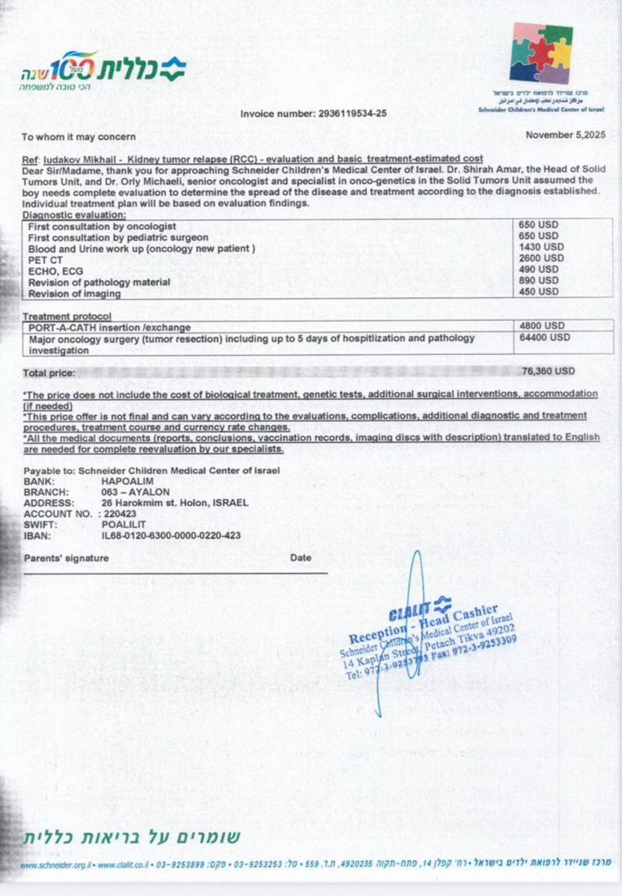 Treatment is required at a clinic in Israel.Leczenie należy podjąć w klinice w Izraelu.Требуется лечение в клинике в Израиле