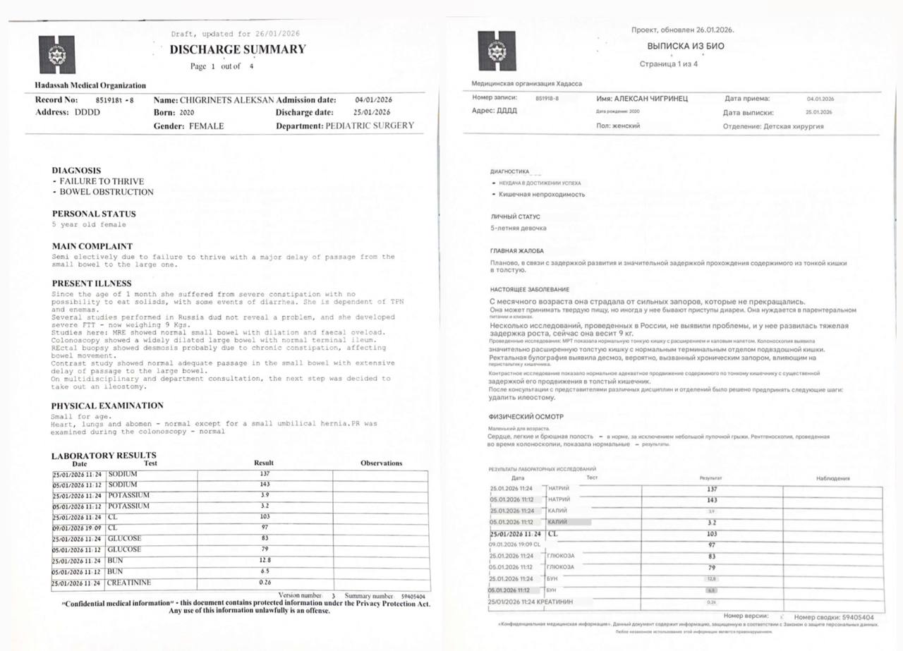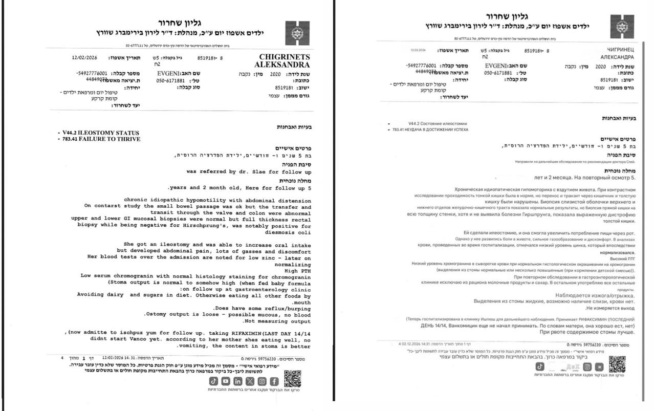 To try to save her, we sold our apartment and moved to Israel. There, doctors finally found the cause... Almost all of Sasha's colon was dysfunctional. The disease was desmosis coli... 😔