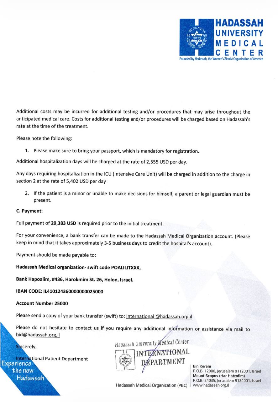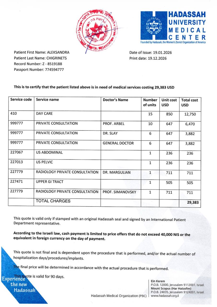 Urgent surgery and rehabilitation at the Hadassah clinic in Israel is required.Konieczna jest pilna operacja i rehabilitacja w klinice Hadassah w Izraelu.Требуется срочная операция и реабилитация в клинике в Израиле "Хадасса"